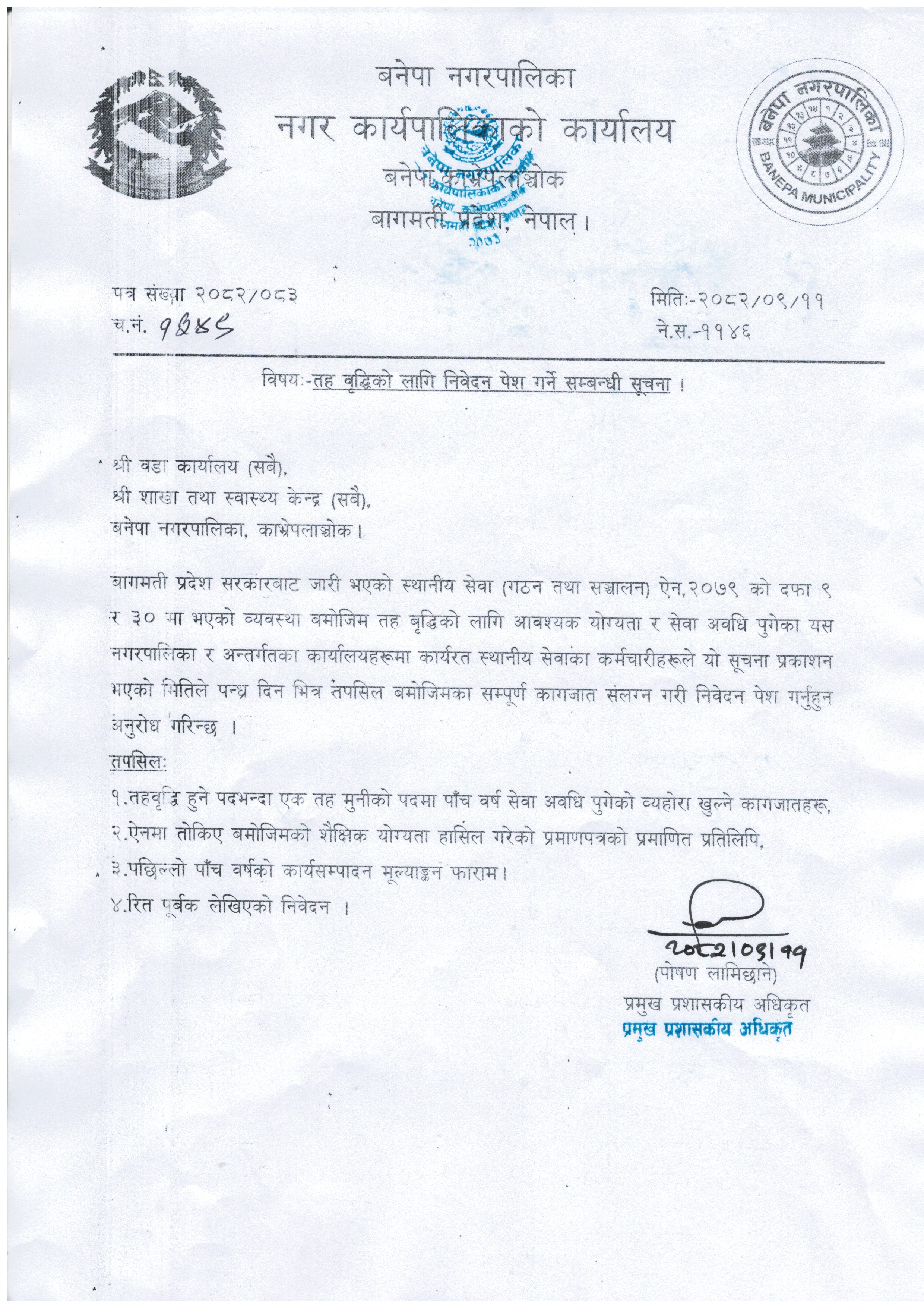 तह वृद्धिको लागि निवेदन पेश गर्ने सम्बन्धी सूचना । (२०८२।०९।११)