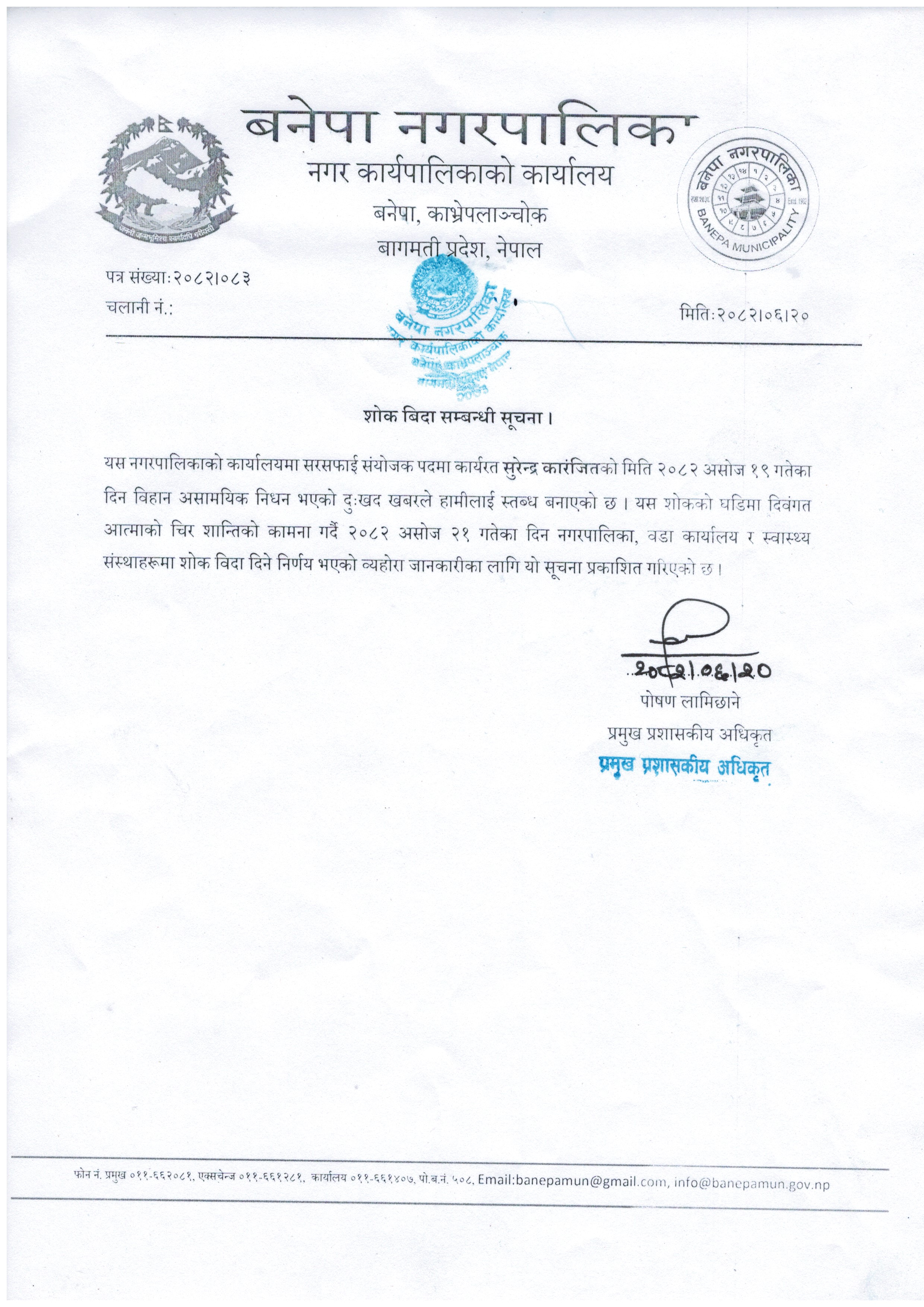 शोक विदा सम्बन्धी सूचना ! (२०८२।०६।२०)