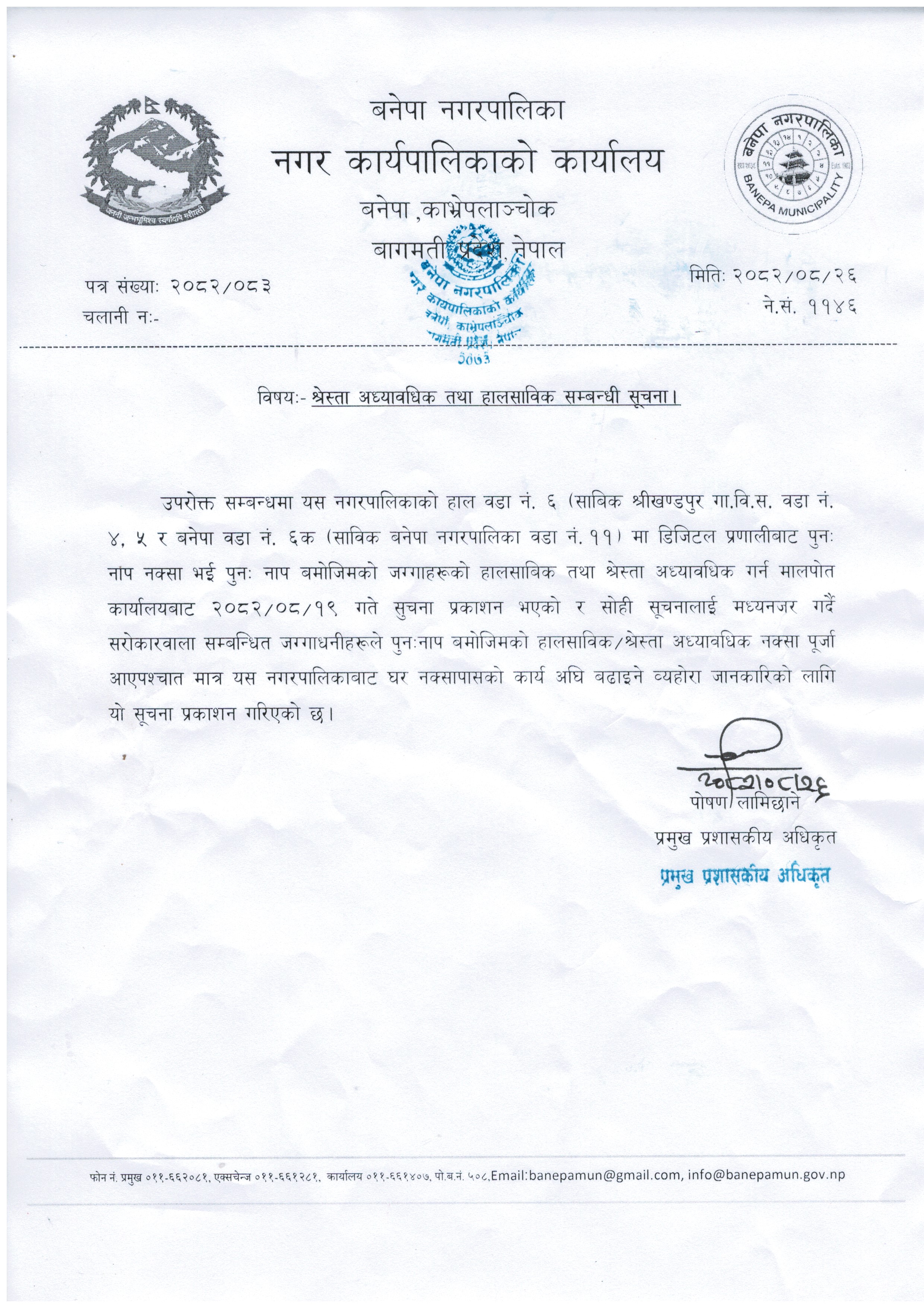 श्रेस्ता अध्यावधिक तथा हालसाविक सम्बन्धी सूचना ! (२०८२।०८।२६)