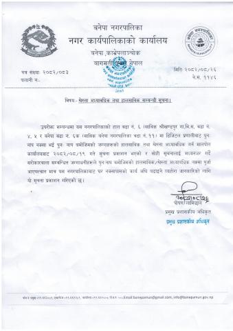 कार्यक्रम :- निती तथा सुशासन, बनेपा नगरपालिका का गतिविधीहरु (Niti Tatha Susasan)