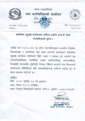 कार्यक्रम :- निती तथा सुशासन, बनेपा नगरपालिका का गतिविधीहरु (Niti Tatha Susasan)
